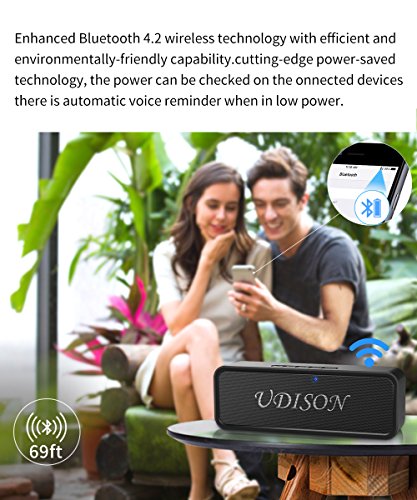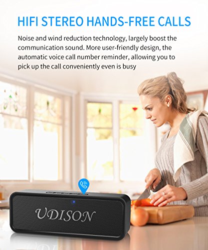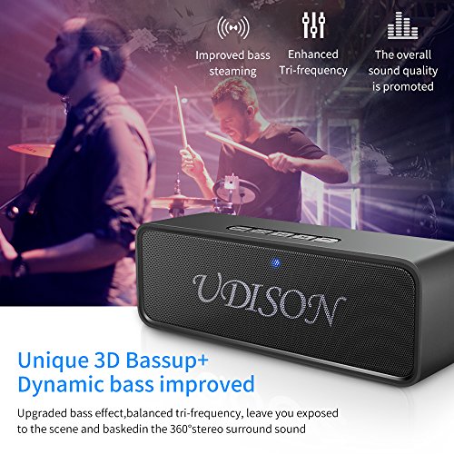 -. Binding : Electronics -. Brand : udison -. EAN : 0702840163814 -. Feature : √【The UDISON Advantage】: New products ranked first in the third quarter of 2017. Superior sound quality and enhanced bass.ultra high-performance P.R.Ice ratio, only half of the P.R.Ice. Dual (3w x 2) high-performance precision acoustic driver and advanced full-range digital signal processing technology to achieve enhanced bass, high-definition music experience. / √【3D Stereo Bass Dynamic Bassup +】: Built-in boost smart chip and advanced 3D stereo dynamic bassup+. Passive radiation enhanced subwoofer and elaborately designed four voicecoil improved 3D audio engine driver. Automatically track low frequency acoustic wave compensation, expanding the madden bass energy to balance the triple. Make you feel like sit in a concert hall. / √【Advanced Bluetooth 4.2+EDR Wireless Technology】: 4.2 efficient environmental enhanced Bluetooth version, without delay. Instantly connect to bluetooth devices from up to 66 feet away within 3s , faster than other portable speakers. Compatible with all Bluetooth-enabled devices, iPhone, iPad, Mac, smartphone, Laptop etc. Automatically memory Bluetooth. Enjoy 12 hours of continuous playtime relying on cutting-edge power saving technology. / √【Incredible IP65 Waterproof】: Waterproof HD speaker with waterproof button, splash proof surface. Daily normal waterproof adapted for both outdoor and indoor. The shell adopts red sturdy design and tightly protect the speaker inside to realize shockproof, anti-drop and anti-scratch effect. Ideal for outdoor sports. / √【HD Hands-free Calling】: Built-in HD Mic, wind elimination and noise reduction technology. Greatly improves your hands-free call HD experience. More humane design with intelligent and automatic caller id voice reminder. In a single gesture, enjoy the wireless high-definition call immediately when drive / kitchen / busy work , as clear as face-to-face dialogue. -. IsEligibleForTradeIn : 1 -. Label : UDISON -. Manufacturer : UDISON -. MPN : UDISON-BlackSpeakerFBA -. PackageQuantity : 1 -. PartNumber : UDISON-BlackSpeakerFBA -. ProductGroup : Speakers -. ProductTypeName : PORTABLE_AUDIO -. Publisher : UDISON -. Studio : UDISON -. Title : Portable Bluetooth Speaker 4.2 with Mobile Power Function 6W Dual-Driver Loudspeaker with 3D Stereo Strong Bass Built-in Noise Reduction Mic 12-Hour Playtime IP65 Waterproof Support AUX/FM//TF/USB -. UPC : 702840163814