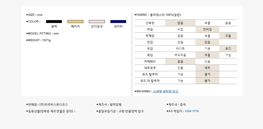 특이 사항 배송, 변경, 반품 환불에 대한 문의는 위 연락처로 문의 주세요.