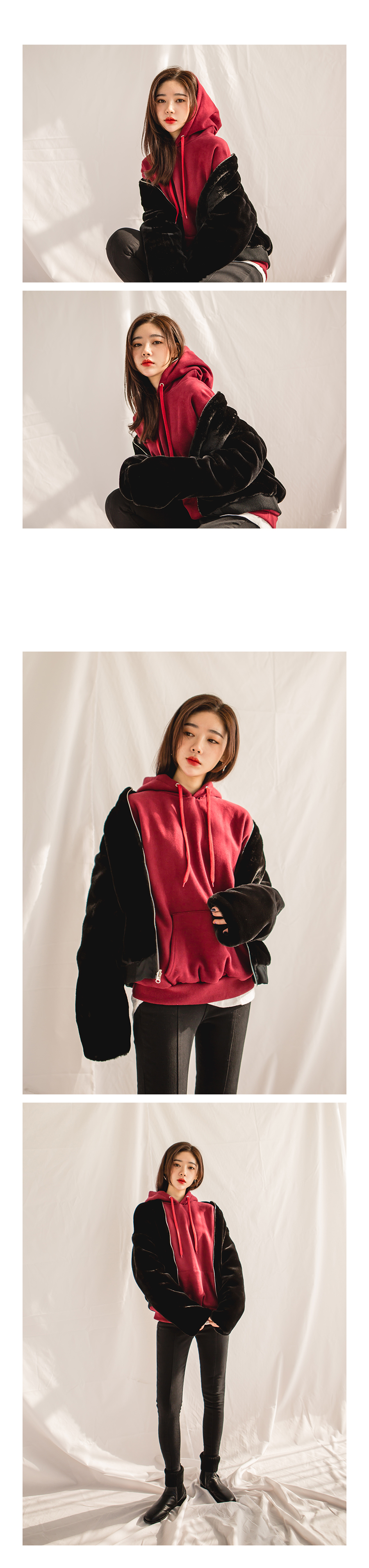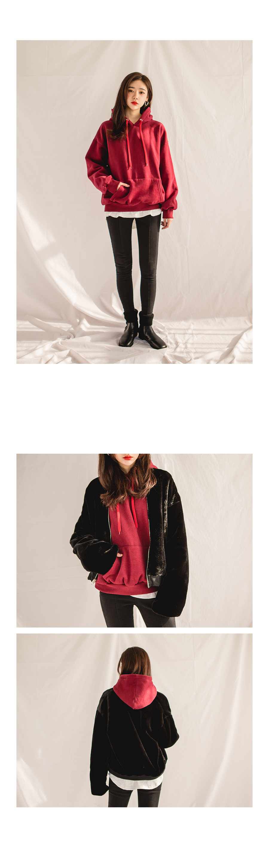 두께감있는 퍼소재로 안감으로 입어도 좋고