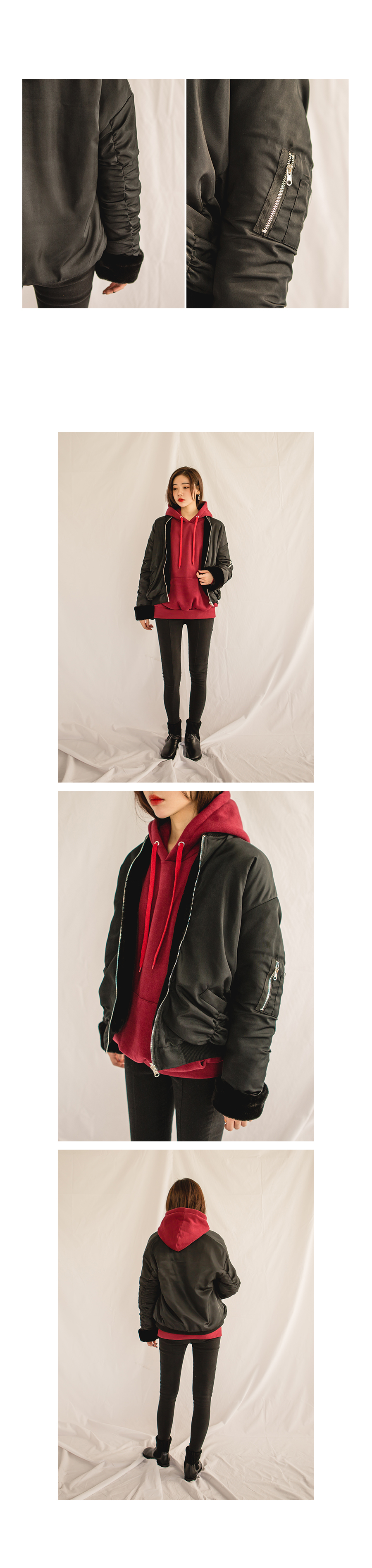 전체적으로 루즈한 기본핏감의 항공점퍼입니다.
