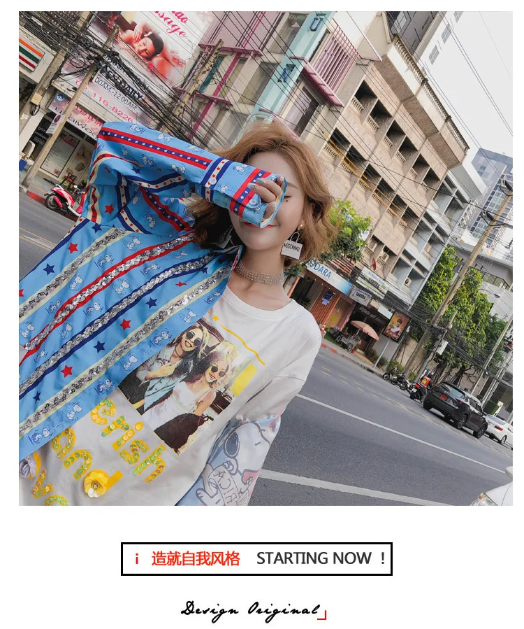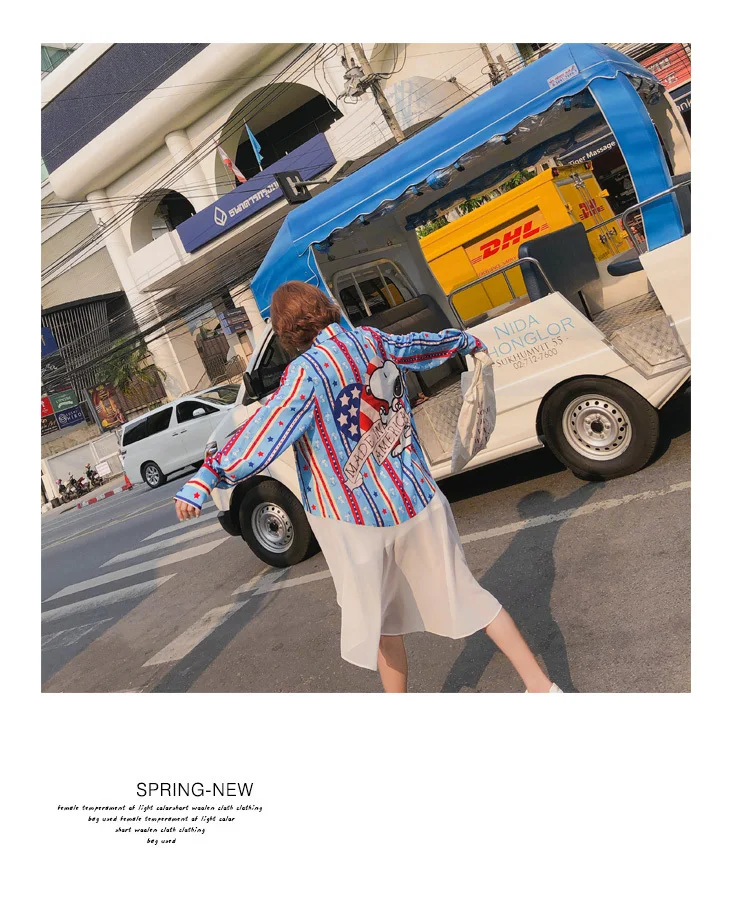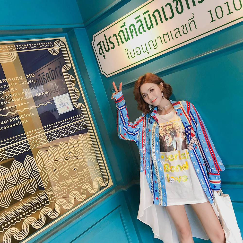 Cartoon Pattern Print Shirt:Women Summer Shirt