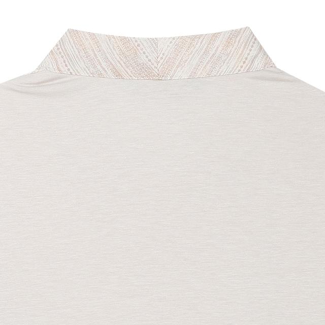 깔끔한 솔리드 컬러의 소재 바탕에 스트라이프 패턴이 있는 소재를 배색하여 여성스러움을 더한 티셔츠입니다.