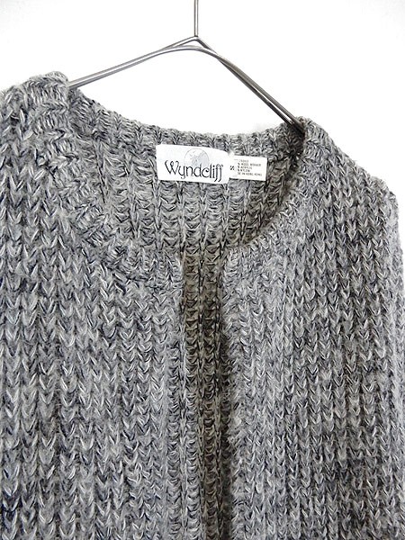 Ladies ブランドWyndcliff カラーグレー メール便不可 コンディション★★★ 素材ウール・アクリル・ナイロン 表記サイズS スタッフコメント毛足の長いふわふわニットです。 フロントはボタンの無いタイプで、コーディネートを選ばない、使える1着かと思います。 実寸サイズ 着丈 59.5 cm 身幅 46 cm 肩幅 42 cm 袖丈 56 cm ※ウエスト・ヒップ以外は平置き採寸