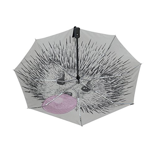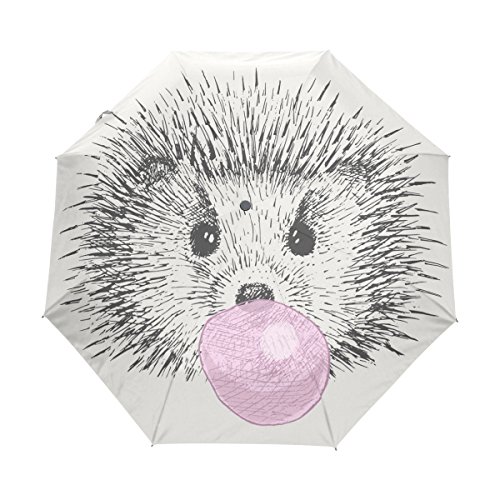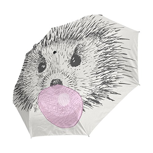 materials: made of 100% polyester pongee waterproof fabric. Weight: it is lightweight, 393g. Single-sided printing. Style: automatic open and close umbrella; foldable mini travel umbrella. Can be used on rainy and snowy day. Suitable for boys, girls, women and man. Feature: Light weight, small, portable. This Hedgehog Inflates Pink Bubble Gum On White Background folding umbrella is also a perfect Christmas gift, new year gift, and back to school gift. 0