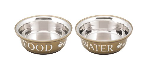 Studio : Royal Trade USA Publisher : Royal Trade USA Binding : Misc. Product Description Gone are the days of the plain pet bowl, with the Buddy's Line Fusion Bowl Food and Water set you can add a decorative touch without comprising on quality or function. Food and water bowl set are made from veterinarian recommended high quality stainless steel interior and a brown poly-shine food and water print exterior. The non-skid rubber base prevents spills, movement and noise. Set features 2 one pint bowls. Food and water bowl sets are available in a variety sizes and colors. 0
