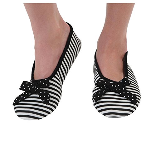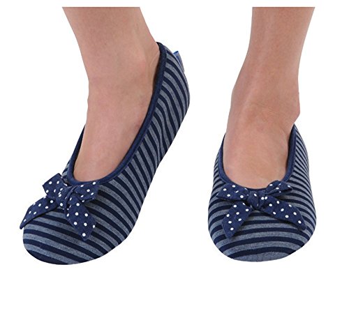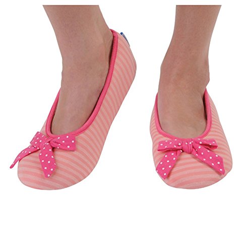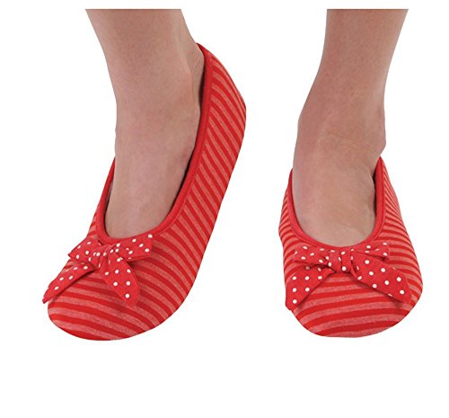 -. Binding : Apparel -. Brand : Snoozies -. Color : multicoloured -. Department : womens -. Feature : Ballerina Striped with Bow / Spring and summer weighted fleece lining / Womens sizes available / Sizes run as follows: Small (5-6), Medium (7-8), Large (9-10) and X-Large (11-12) / Soft, cozy indoor soles great for hard floors, cold and tired feet -. PackageQuantity : 1 -. ProductGroup : Apparel -. ProductTypeName : SOCKSHOSIERY -. Title : Snoozies Womens Striped Ballet Style Indoor Flats Slipper Socks