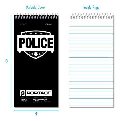 The reporters size POLICE Notebook from Portage is an essential tool for all law enforcement professionals. The notebooks have extra thick covers to allow you to take notes while standing. There are 12 notebooks per bundle. Portage Notebooks has been making notebooks for over 50 years, and is the trusted name in professional notebooks.