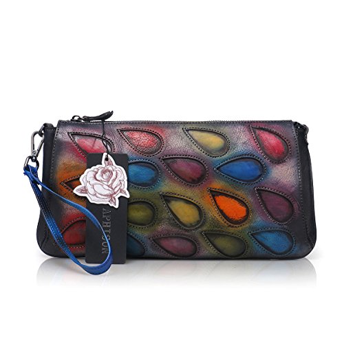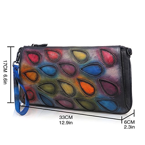 APHISON Peacock Feathers Clutch Purse Women's Leather Long Style Wristlets Wallets (Colorful)