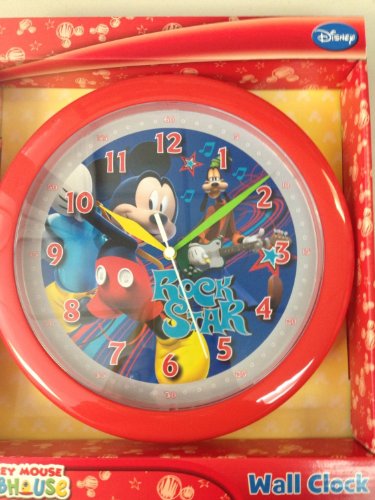 -. Title : MICKEY ROCK STAR DISNEY 10 WALL CLOCK: Mickey Mouse Club House Wall Clock Quartz Accuracy, Easy Wall Mounting. Battery Operated Requires 1 AA Battery (Not Included
