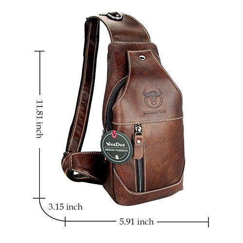 Studio : WeeDee Publisher : WeeDee Product Description About This Small Sling Backpack: This small sling backpack is being manufactured by high quality water resistant genuine leather. Main compartment with 2 inner pockets can perfectly fit your iPad Mini, kindle small notebooks, cellphone etc. The backpack's adjustable shoulder strap can help you wear comfortably. This is a durable, versatile and lightweight backpack, which is great for your everyday activities. Feature: ? Material: genuine leather ? Size: 5.9"*11.8"*3.2" (L*H*W) ? Weight: approx. 18oz (520g) ? Color: Black, Brown ? The full length of the strap: approx. 51"