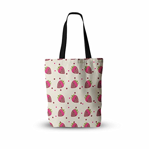 KESS InHouse afe images "Chocolate Strawberries Pattern" Red Pink Digital Everything Tote Bag, 13" x 13", Multicolor