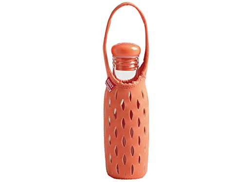 This water bottle is made from Borosilicate glass which is safe for hot or cold beverages and has a 17-ounce capacity