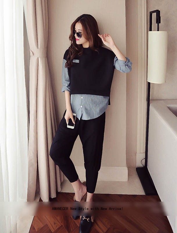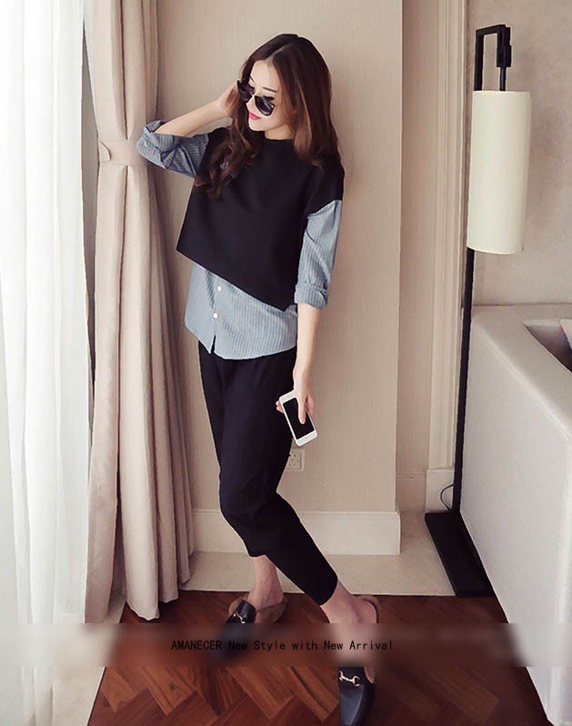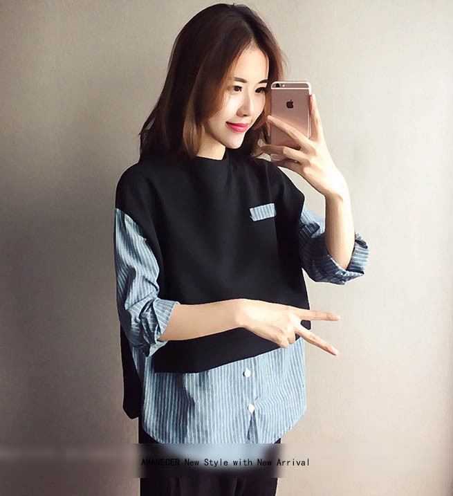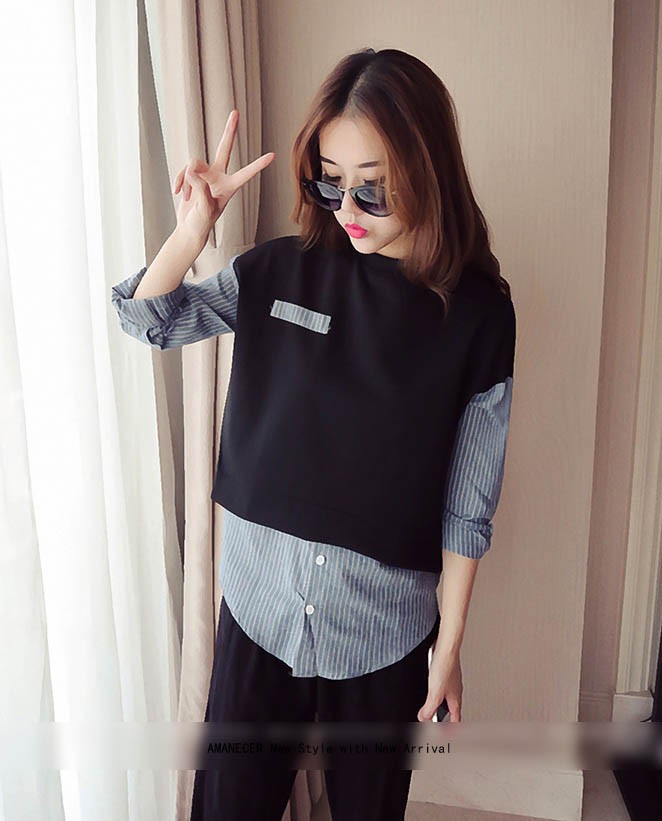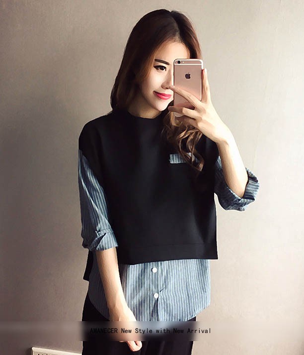 【入荷後営業日2,3日以内出荷予定 通関待ちや不良により出荷遅くなる場合はメールにてご連絡いたします。メール受信設定によっては正常に受信されない場合はございますので、 弊社からのメールを予め受信頂くようご設定くださいませ。】 トップス シャツブラウス レイヤード風 重ね着風 ボーダー 長袖 フェミニン 大人可愛い レディス レディース 春 新作レイヤード風ストライプ柄シャツブラウス◆サイズ:胸囲98着丈58◆素材:コットン70%+ポリエステル30%