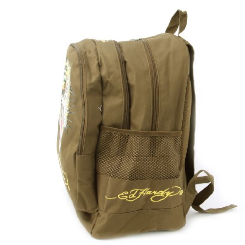 -. Brand : Ed Hardy -. Department : boys -. Feature : three Large zip compartments / Ed Hardy tattoo All Over P.R.Int, Two side mesh holders / Padded mesh Adjustable shoulder straps / Top handle for easy carrying, Fully lined interior / 12 x 17 x 8" (WxHxD) -. Model : 1A1A1AOC -. ProductGroup : Apparel -. ProductTypeName : LAGE -. Title : Ed Hardy Bruce Backpack with Tattoo P.R.Ints