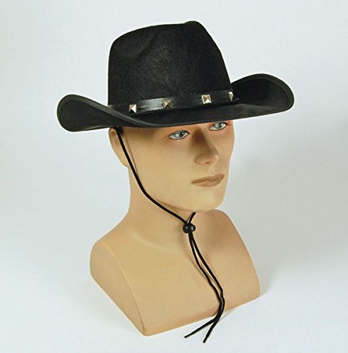 -. Feature : Felt cowboy hat / Includes hat with a studded band detail / Ideal for fancy dress or Wild West themed parties / Colour: Black / Size: One size