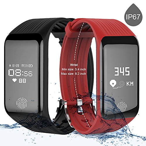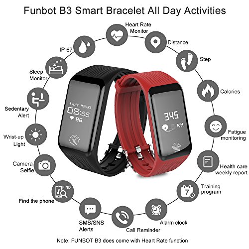 -. Title : Funbot B3 Fitness Tracker,Activity Continuous Heart Rate Monitor Smart Pedometer Bracelet, IP67 Waterproof Fitness Watch Sleep Calorie Counter with Replacement Red Band for Android & iOS