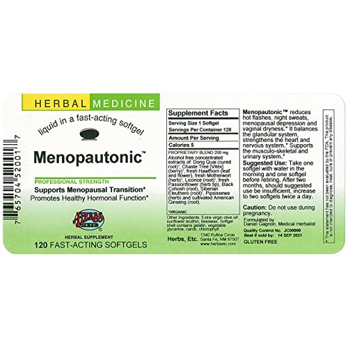 -. Title : Herbs Etc - Menopautonic Alcohol Free - 120 Softgels by Herbs Etc.