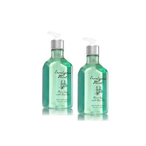 -. Binding : Misc. -. Brand : Bath & Body Works -. EAN : 0745577641897 -. Feature : 2 pack Eucalyptus Mint Hand Soap with Olive Oil 10 Oz / Eucalyptus Mint: Eucalyptus & fresh-cut Spearmint soothe the senses. / Specially formulated with rich, conditioning Olive Oil, our luxury hand soap nourishes skin and leaves your hands feeling soft, smooth and lightly scented. / Beautiful bottle adds a touch of décor at your sink. -. IsAdultProduct : 0 -. Label : Bath and Body Works -. Manufacturer : Bath and Body Works -. MPN : AB-99543 -. PackageQuantity : 1 -. PartNumber : AB-99543 -. ProductGroup : Beauty -. ProductTypeName : BEAUTY -. Publisher : Bath and Body Works -. Studio : Bath and Body Works -. Title : Bath and Body Works 2 Pack Eucalyptus Mint Soap with Olive Oil. 10 Oz -. UPC : 745577641897