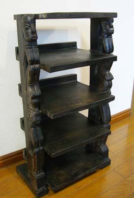 サイズ・幅:38cm・奥行:25cm・高さ:70cm-主素材天然木コメント4段の多目的ラックです。靴入れやマガジンラックなど様々な活躍間違いなしです。サイドの原人の彫刻や一番上のトカゲの彫刻がかっこよいですよ!