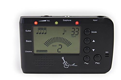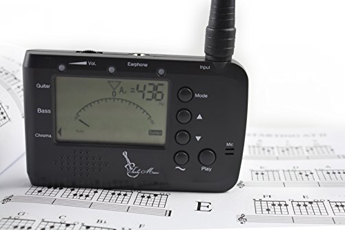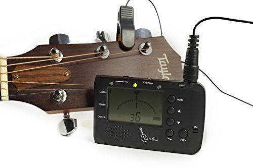 - Feature : FAST AND ACCURATE TUNING - Sensitive and accurate multi-instrument tuner can be used for any instrument, including acoustic guitar, electric guitar, bass, 12 string guitar, violin, ukulele (uke), mandolin, and banjo. Clip-on attachment picks up vibrations directly from any string instrument! / EASY, INTUITIVE INTERFACE - Features auto modes for guitar and bass, along with digital chromatic tuner for general instrument use. Switch to flat and double-flat tuning with the press of a button. Can even be adapted for use with a capo. / FLEXIBLE METRONOME FUNCTION - Metronome features 8 sub-division options, as well as 8 beat options and a wide range of tempos. Use the LCD display or headphones for a quieter way to keep time, or turn up adjustable volume control for a clear beat that's easy to hear over your music. / DURABLE CONSTRUCTION - Lightweight, travel-size tuner includes one year guarantee. Simply contact us with any issues for a prompt replacement. / ALL ACCESSORIES INCLUDED - Comes with clip-on headstock pickup and three AAA batteries.