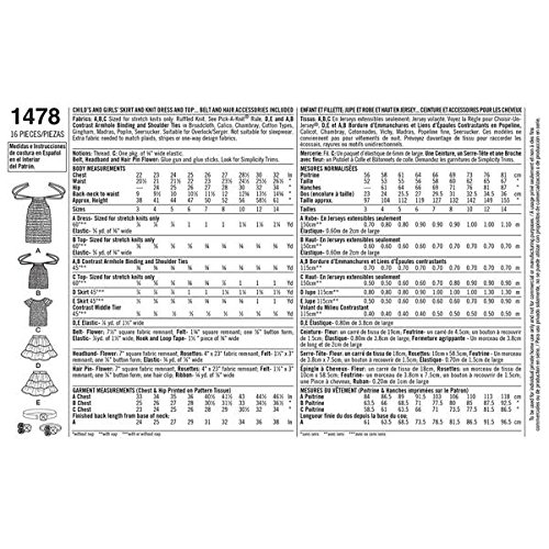 Simplicity Mellon Monkeys Pattern 1478 Girls Skirt, Knit Dress and Top, Belt and Hair Accessories Sizes 7-8-10-12-14