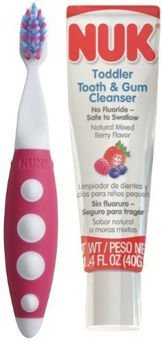 -. Feature : NUK Toddler Tooth and Gum Cleanser, 1.4 Ounce / Ergonomically designed wide handle is easy for little hands to grip / Toothbrush has a small head for easy brushing / Natural mixed berry flavor - Contains no fluoride