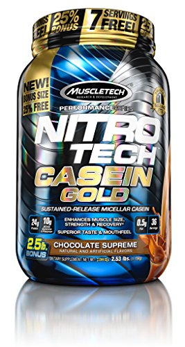 ReleaseDate : 2017-06-10 Studio : MuscleTech Publisher : MuscleTech Binding : Health and Beauty Product Description Nitro Tech has led the way in whey protein innovation. And now new Nitro Tech Casein Gold is here! This advanced protein powder features multiple premium casein protein sources for optimal digestion rate and superior BCAAs profile! Casein protein and milk protein are some of the slowest-digesting proteins available - much slower than whey protein and whey protein isolate. Nitro Tech Casein Gold delivers 24 grams of high-quality casein protein taken from multiple premium casein sources for a prolonged amino acid release to feed your muscles for up to 8 hours. What's more, each enhanced serving of Nitro Tech Casein Gold contains 10 grams of naturally occurring BCAAs, L-glutamine and precursor, and only 1 gram of sugar. Directions: Ideal use is nighttime and between major meals. Mix 1 serving (1 scoop) with 8 to 10 oz. of cold water or skim milk in a glass or shaker cup. For best results, mix 2 servings (2 scoops) with 16 to 20 oz. of cold water or skim milk in a glass or shaker cup. Read the entire label before use and follow directions provided. 0