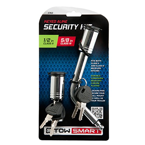 -. Brand : Tow Smart -. EAN : 0875195007437 -. Feature : Reversible dual diameter design fit both Class II and Class III receivers / PVC Cap to keep dirt out of lock / Locking pins secure your ball mount as well as your trailer / Made In China -. Label : TowSmart -. Manufacturer : TowSmart -. ManufacturerPartsWarrantyDescription : Parts -. Model : 743 -. MPN : 743 -. NumberOfItems : 1 -. PackageQuantity : 1 -. PartNumber : 743 -. ProductGroup : Home Improvement -. ProductTypeName : HARDWARE -. Publisher : TowSmart -. Studio : TowSmart -. Title : TowSmart Keyed Alike Booomerang Hitch Pin and Coupler Lock 743 -. UPC : 875195007437