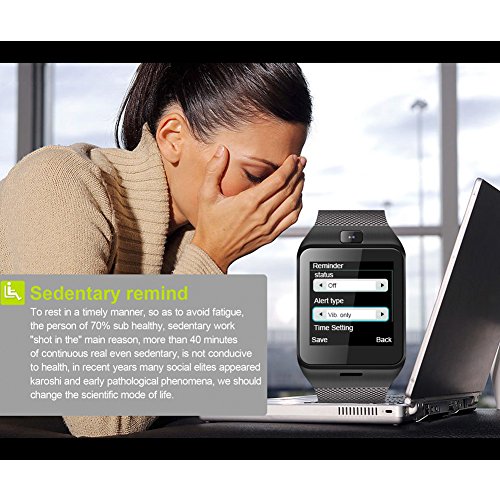 -. Feature : Long Standby Time-Built in 550mAh polymer battery,charger time about 1 hour,could support 3-hour phone call,6-hour music play,stand by one week. / Call / SMS Reminder:supports 2G SIM card,can realize basic call and SMS function,if you want to use Whatsapp,Twitter,Facebook on watch,you need put a 2G SIM card or connect the watch with your phone. / Support hands-free calls /Answer or Dial calls from your wrist,Remote control your phone camera to taking a photo,health tracking app can monitor your sleeping,walking. / Two Working Mode:One is connect with phone by bluetooth,It Enable To Make Call Or Receive Call/Send/Get Message Etc Via Bluetooth.;Another one is Network Mode (need Insert SIM TF Card),It Enable To Make Call And Send Or Get Message Via The SIM Card You Inserted,the watch be a cell phone. / Compatible with Andriod smartphone& Android Tablet PC.(4.2 and Above) .Bluetooth 3.0,include SAMSUNG galaxy s4/s5/s6/s7 Edge Note 3/4/5 HTC NEXUS SONY LG HUAWEI XIAOMI ect.