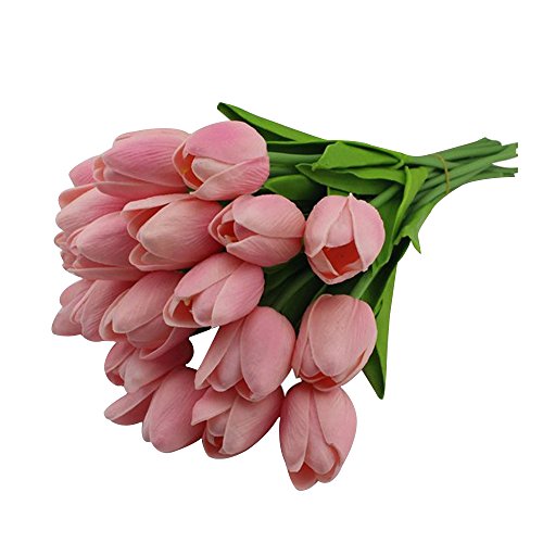 Kaimao 10 Pcs Real Touch Artificial Tulips Flower Bouquet / Fake Flower Bouquets for Wedding Garden Decor Birthday Christmas Gift - Pink