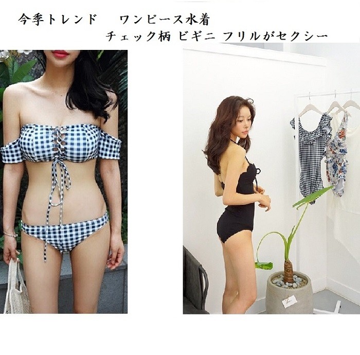 今季トレンド ワンピース水着 チェック柄 ビギニ フリルがセクシー