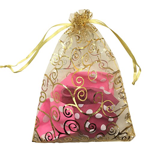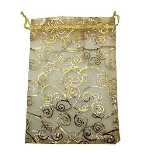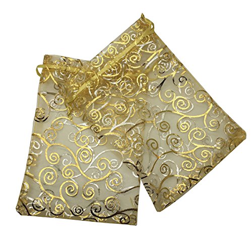 Sosam 100PCS 5x7" (13x18cm) Drawstring Organza Jewelry Favor Pouches Wedding Party Festival Gift Bags Candy Bags (5x7", Gold with Print)