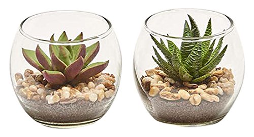 Worth Imports 2.8" Succulents in Glass Pot, Set of 2, 2 Piece