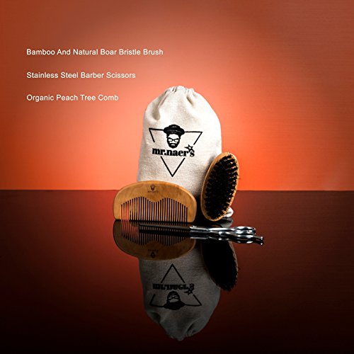 - ✔Combing and Shaping Tools: With tools like the special shaped stainless-steel scissors, organic peach tree comb, bamboo and natural boar bristle brush you can shape and style your beard and moustache easily and whenever you want. Additionally, you get a canvas cloth bag made from organic cotton with your kit where you can store your equipment.