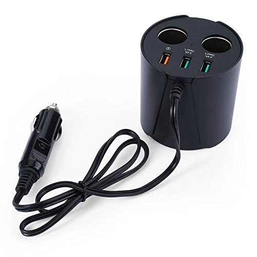 -. Feature : 1 QC2.0/3.0 optional, 30 minutes charging about 70%. / 2.Intelligent identification, fast charging and protecting mobile phone. / 3. supports maximum current 10A / 4.. Bakelite material, fireproof / 5. two cigarette lighter expansion port, support to connect multiple car appliances.