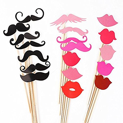 SIX VANKA 44pcs DIY Glasses Moustaches Red Lips Bow Ties Hats On Sticks Wedding Birthday Party Photo Booth Props for kids