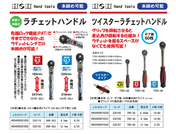 本締め可能。 ツイスタータイプ。グリップを回転させると差込角が回転しますのでラチェットを振らずに作業が出来ます。