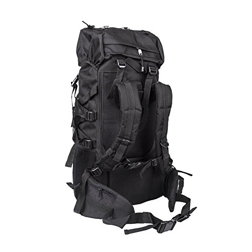 -. Feature : Capacity:55 liters, product dimension: 25.98 x 9.84 x 13.77inch / Material:Water resistant 600D polyester , weight:4.6 pounds / Bottom sleeping bag compartment,Integrated raincover in base compartment , adjustable shoulder straps / Dual side compression straps ,D-Rings,Anchor loop,Thick mesh lumbar pad .Convenient zippered pocket on padded waist belt .