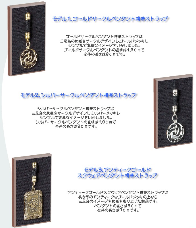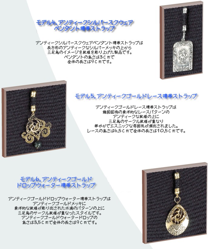 ***韓国ドラマ「朱蒙(チュモン)」にも登場する太陽神“三足烏”をモチーフにした携帯ストラップ★シルバーメッキの三足烏ペンダントがスマートで高級感のあるアイテム。ケース付きでプレゼントにも最適です!***【サイズ】ペンダント直径1.8cm、全長8cm【メーカー】高句麗ベルト*ストラップの紐の部分はデザインが変わることもありますのでご了承くださいませ。