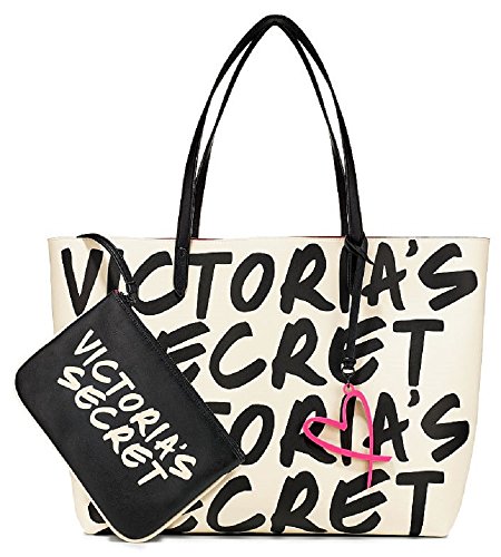 -. Brand : Victoria's Secret -. Color : Black & White with a pink heart key chain look alike -. Department : womens -. EAN : 0656114100848 -. Feature : Includes a removeable interior zippered pouch / Features one interior zip pocket & two interior slit pockets / 8.5" handle drop length / Measurements: 14" L x 5¾"W x 11½"H / Material: Imported Polyurathane -. ProductGroup : Shoes -. ProductTypeName : HANDBAG -. Title : Victoria's Secret Black/ White Wicked Tote Bag w/ Detachable Pouch -. UPC : 656114100848