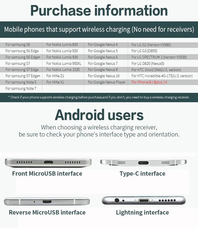 Feature 3:For samsung Note 5 Note 8 wireless charger