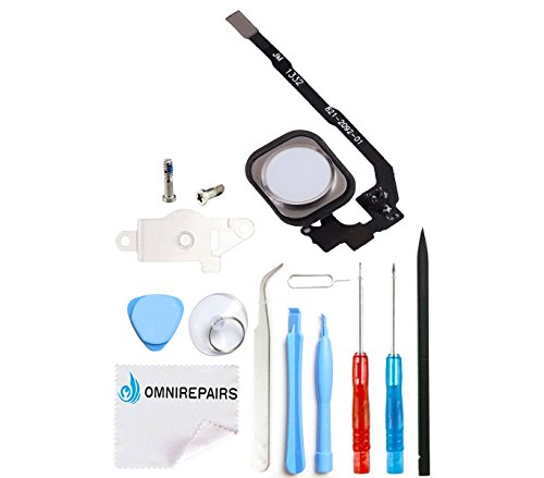 Omnirepairs-For Silver/White iPhone 5s and SE Home Button Flex Cable Replacement + Rubber Gasket + Screws + Tools (Silver)