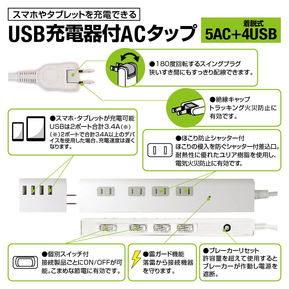 ● Because it has individual switches, it is useful for frequent power saving.