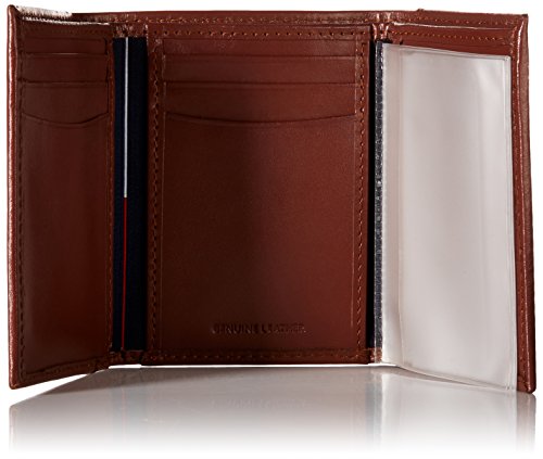Tommy Hilfiger Cambridge Tan Trifold Wallet w/Gift Box. This wallet measures 2.8" x 4". Features: The trifold design provides two lengthwise pockets for bills, 3 credit card slots on the inside left, right and center, an ID window in the outer right, four extra removable plastic credit card slots on the center inside, and a hidden slot on the inside left, right and center side. Each wallet comes in a Tommy Hilfiger Valet Gift Box.