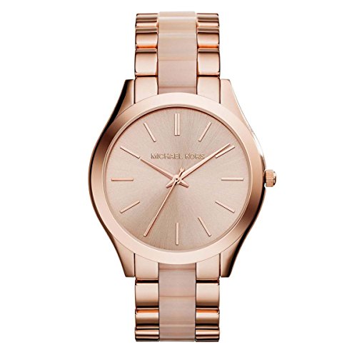 -. Binding : Watch -. Brand : -. Color : Rose Gold/Blush -. Department : womens -. EAN : 0796483140448 -. Feature : Pink gold-tone watch featuring textured pink sunray dial with logo and rose gold-tone stick indices / 42 mm stainless steel case with mineral dial window / Quartz movement with analog display / Three-link bracelet with pink resin center links and fold-over clasp with double push-button safety / Water resistant to 50 m (165 ft): In general, suitable for short periods of recreational swimming, but not diving or snorkeling -. IsAdultProduct : 0 -. Label : Watches MFG Code -. Manufacturer : Watches MFG Code -. Model : MK4294 -. MPN : MK4294 -. PackageQuantity : 1 -. PartNumber : MK4294 -. ProductGroup : Watch -. ProductTypeName : WATCH -. Publisher : Watches MFG Code -. ReleaseDate : 2012-04-23 -. Studio : Watches MFG Code -. Title : Women's MK4294 Slim Runway Rose Gold-Tone Stainless Steel Watch -. UPC : 796483140448