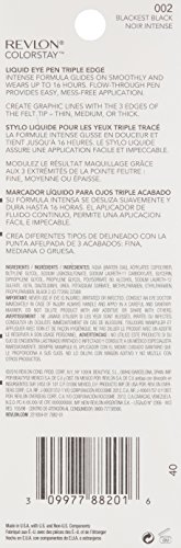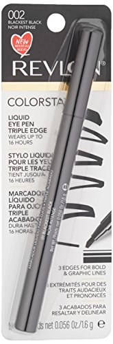 The Revlon ColorStay Liquid Eye Pen, Classic, Blackest Black is the new liquid eyeliner you need. With an intense formula that glides on smoothly and an easy flow-through pen provides easy, mess-free application, choose from any one of the three eye pens to achieve any liner look. Choose the Classic to create any look from soft to dramatic, with the tapered felt tip. Triple Edge creates graphic lines with 3 edges of the felt tip- thin, medium, or thick. The Ball Point has a rounded felt tip, dot then trace along the lash line for an easy liner look. All are available in Blackest Black. Up to 16 hours of wear.Feature