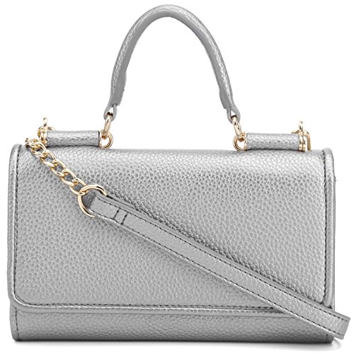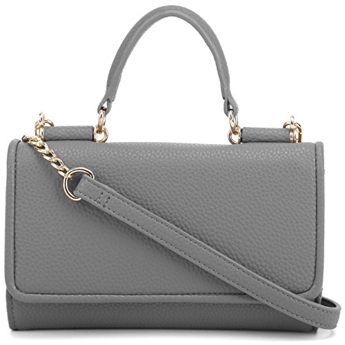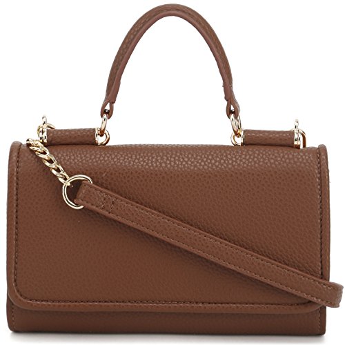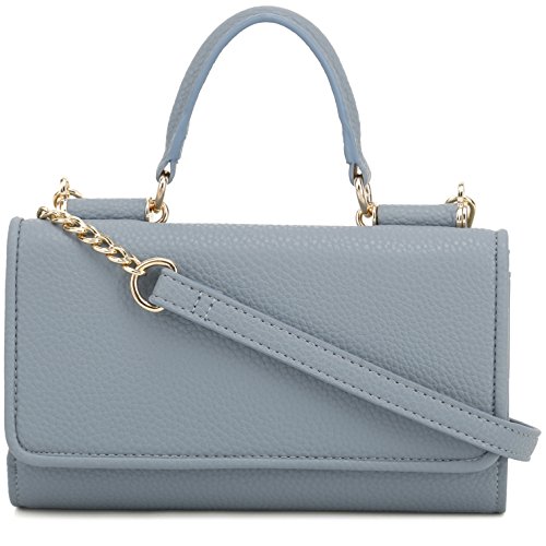 Lily Jane's Clutch Wallet Purse has a removable chain strap (26 inch drop) with a soft vegan leather strap area for where it rests on your shoulder. The clutch has a compartment for even plus sized phones. In addition to the compartment that can fit upto an iPhone Plus or Galaxy Note, there's a cash compartment and 7 card slots. Made of synthetic leather & gold metal tone hardware, the clutch has a button clasp to keep your contents secure.Feature