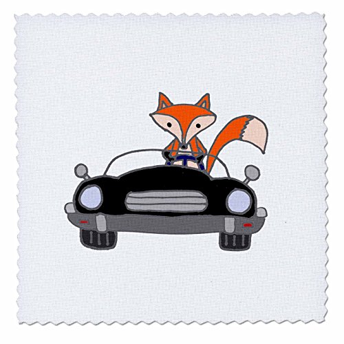 3dRose Funny Artistic Red Fox Driving a Black Convertible Car Art Quilt Square, 6 x 6"