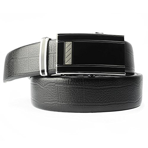 LOOK IMPRESSIVE: Be the envy of your colleagues and friends with our beautiful looking genuine leather ratchet belt. Made from real leather with a synthetic coating to provide a HIGH QUALITY adjustable belt with maximum DURABILTY, STYLE and ELEGANCE. Our fashion current automatic buckles are made of ZINC ALLOY with a sealing glaze for a long lasting finish.