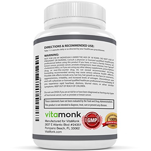 -. Feature : FORMULATED BY LICENSED DOCTORS - Our licensed doctors created this special formula to make sure you get the most effective DHEA hormone supplement (or dehydroepiandrosterone) on the market! / SUPERIOR ABSORPTION DHEA SUPPLEMENT - This special, custom formula includes black pepper extract (compare to bioperine or piperine ) to activate our micronized DHEA supplement. This promotes more absorption per dose you take for maximum results. With our DHEA 100 mg capsules you know you'll get what you pay for. We sourced the highest quality ingredients and put them in this dietary supplement to guarantee you get the right amount of DHEA per capsule for optimal results. / ONE OF THE HIGHEST DOSES ON THE MARKET - Our Opti-DHEATM gives you one of the highest doses of dehydroepiandrosterone on the market. If you're looking for a DHEA supplement with optimal absorption - you'll find it in these 100 mg capsules! / SAFE & EFFECTIVE At VitaMonk we source the highest quality ingredients and go to great lengths to make sure our supplements meet the highest safety standards. We follow strict FDA guidelines and GMP compliance standards for optimal safe results. / 100% MONEY BACK GUARANTEE - Purchase risk-free. We guarantee results or you will get your money back. We're confident that you will love DHEA supplement OptiDHEA. CLICK ADD TO CART button and get your high quality DHEA today!